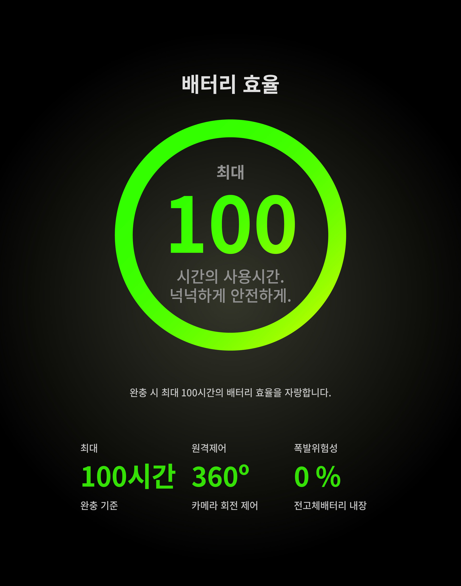 리튬 배터리의 폭발 위험을 완전히 제거한 전고체 배터리로 충격과 누수에도 안전합니다.