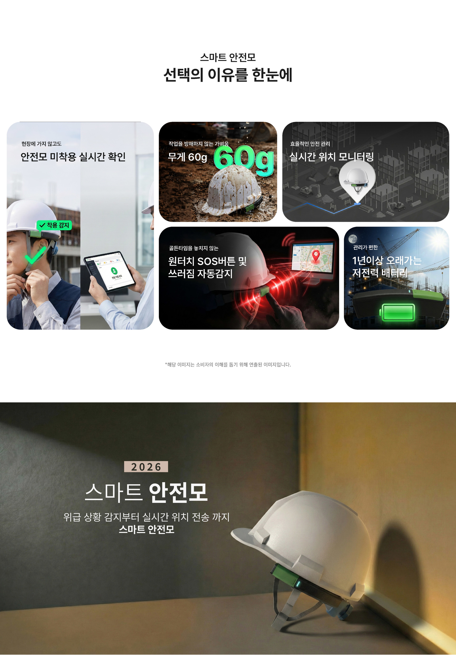 | 내장 센서 | 안전모 착용 감지 센서, 정밀 가속도 센서 |